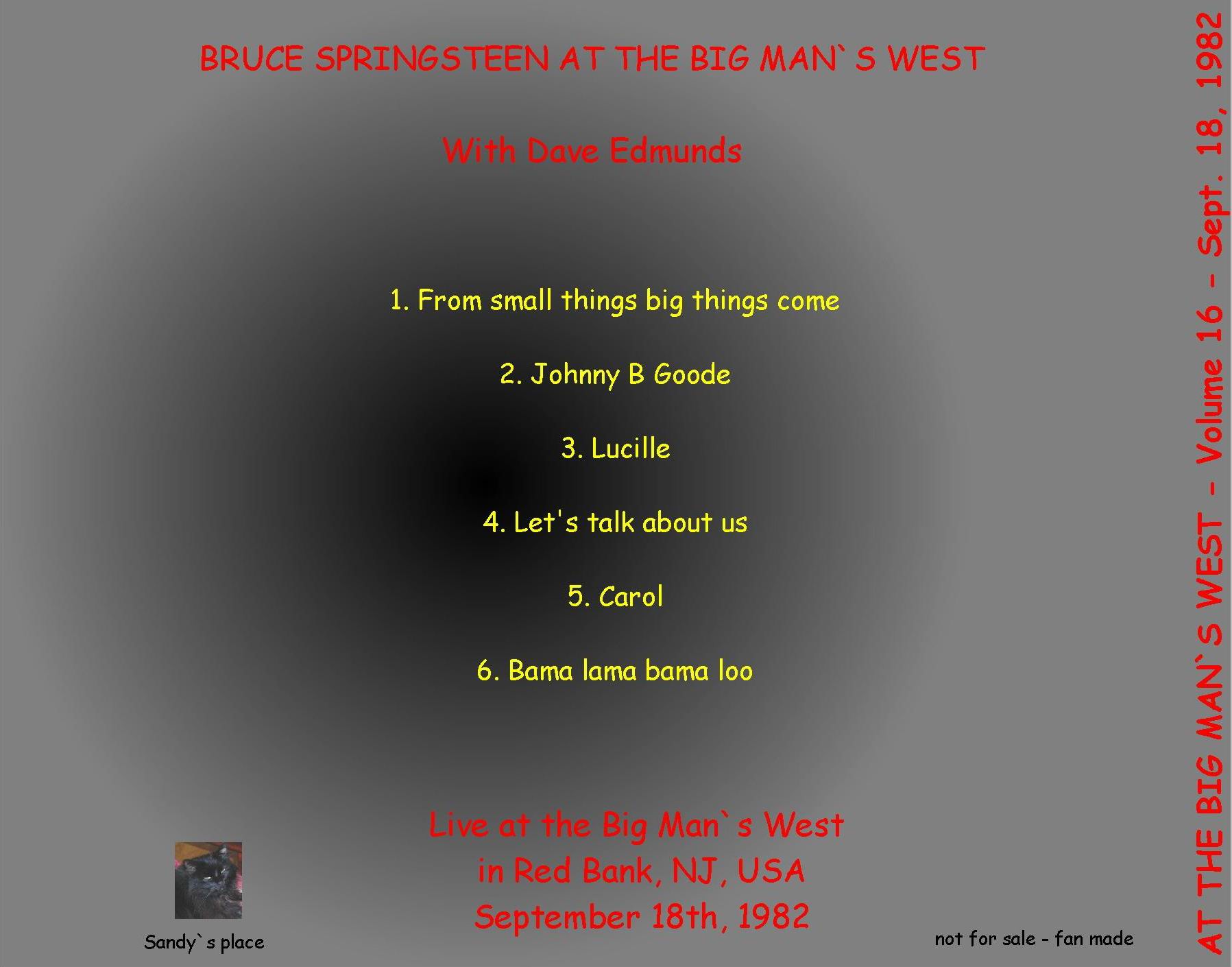 Title: Bruce Springsteen at Big Man`s West - Vol.16 Date: 1982-09-18 Uploader: Olli2605