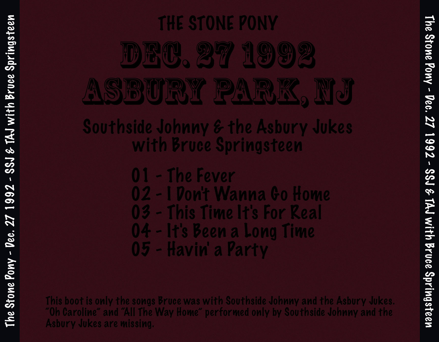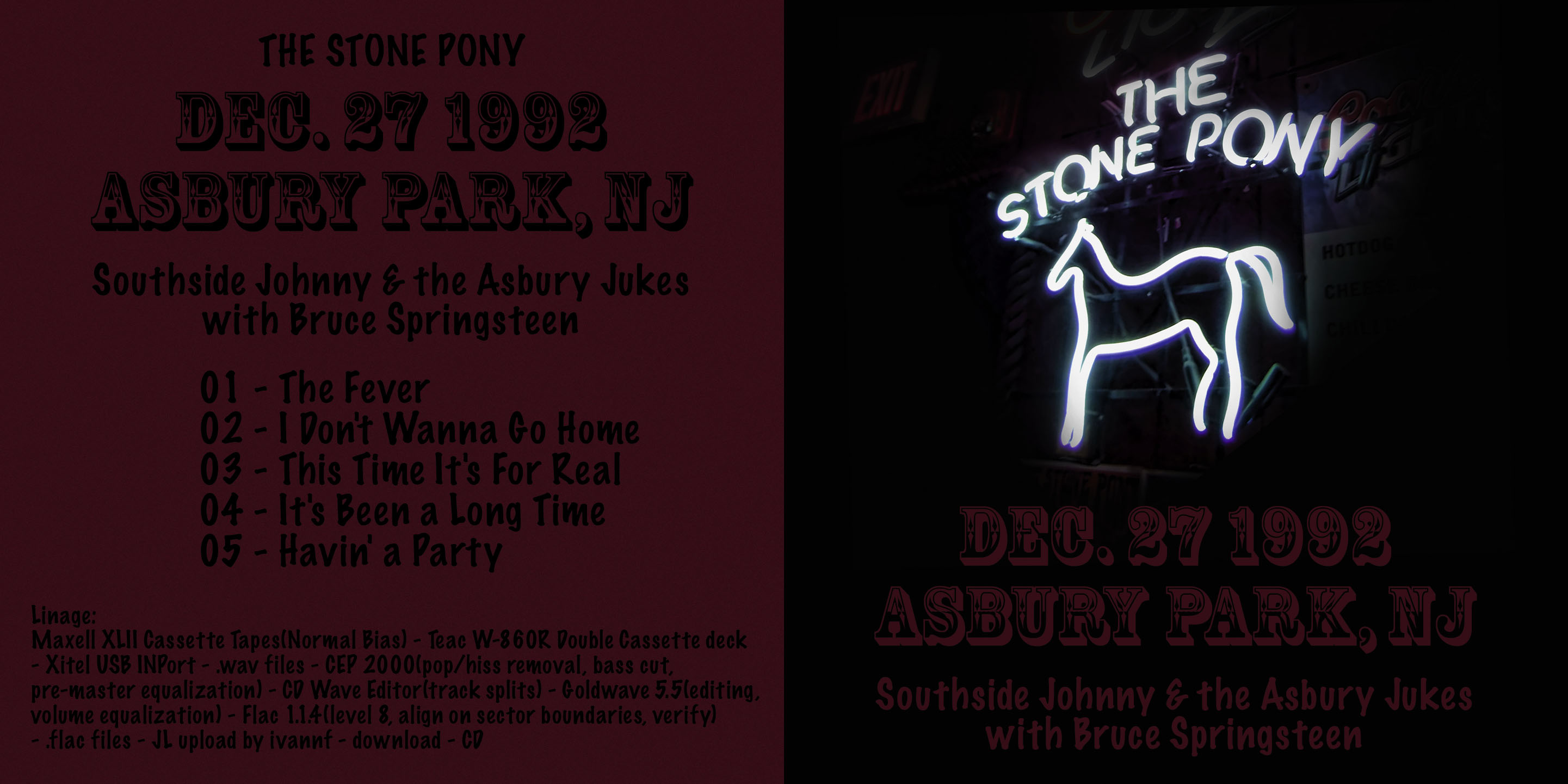 Title: 1992-12-27 SSJ & TAJ with Bruce Springsteen (Maxell XLII Cassette Tape transfer) Date: 1992-12-27 Uploader: Highway12