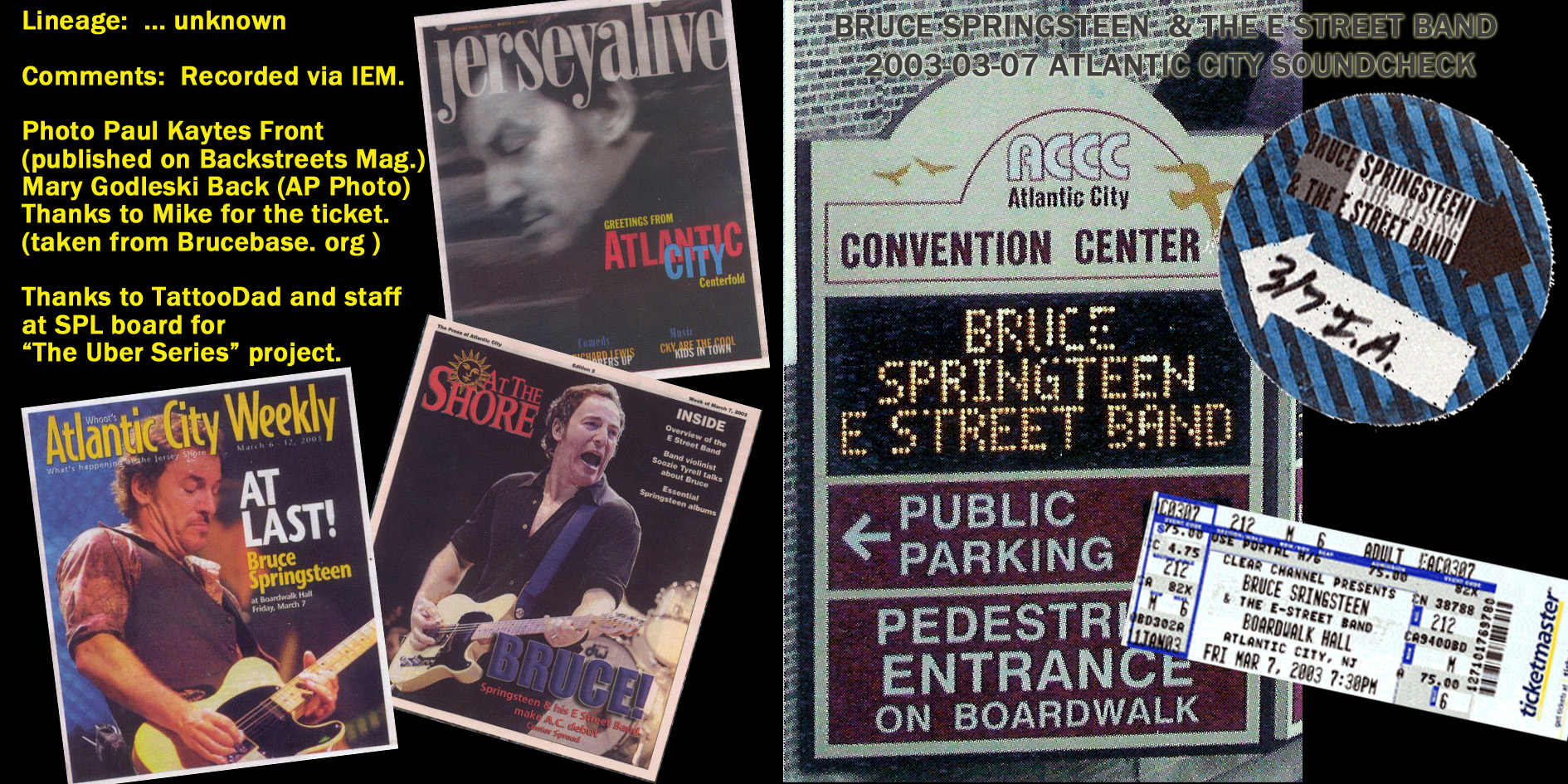 Title: The Uber Series Volume Two - 2003-03-07 Atlantic City Soundcheck (Version 3) Date: 2003-03-07 Uploader: baloss