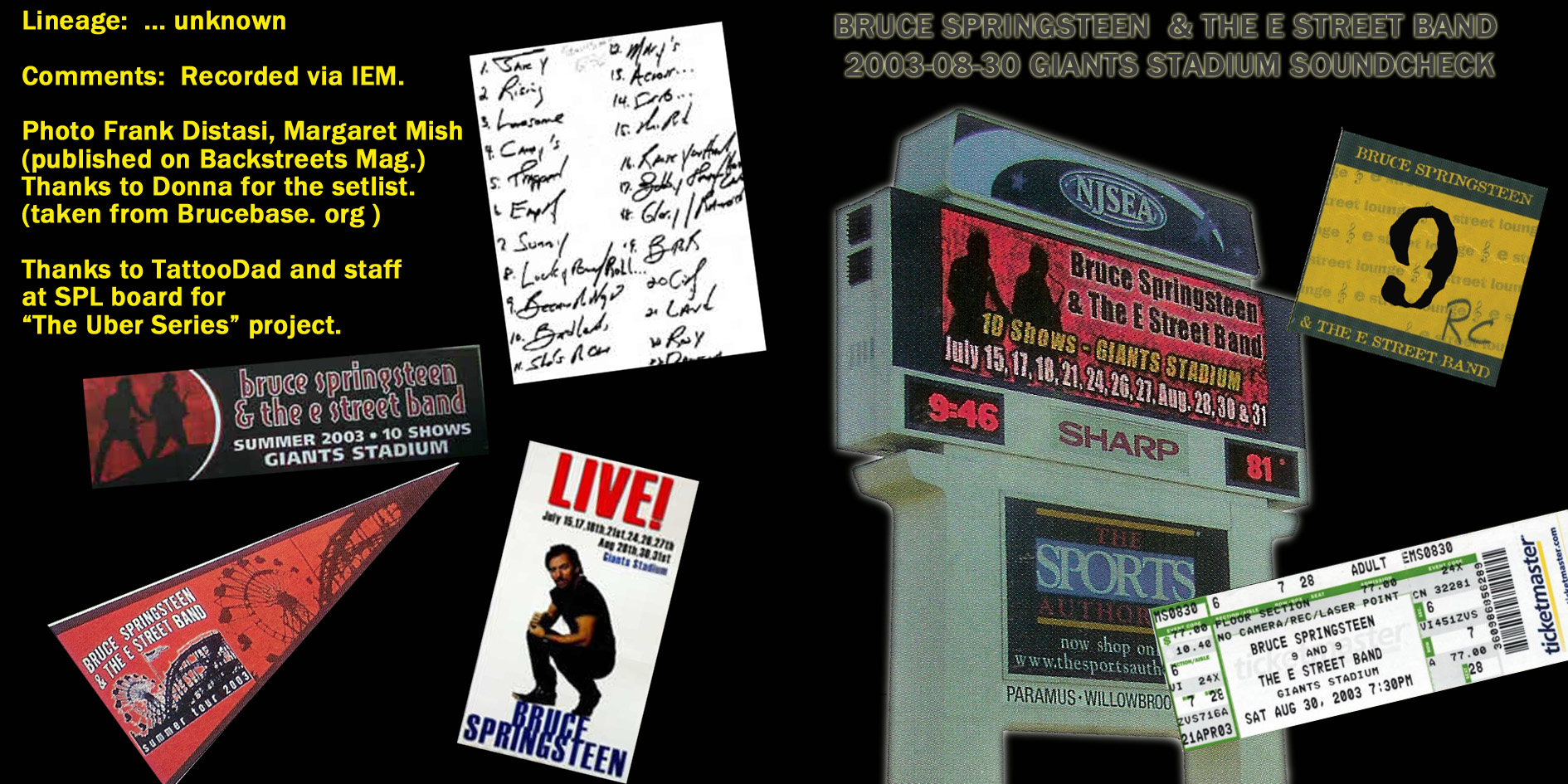 Title: The Uber Series Volume Three – 2003-08-30 Giants Stadium soundcheck (Version 2) Date: 2003-08-30 Uploader: baloss