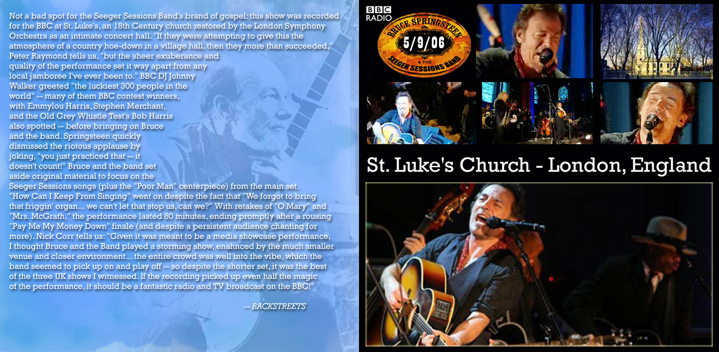 Title: Seeger Sessions tour - St Luke's Church - BBC radio broadcast (Version 2) Date: 2006-05-09 Uploader: takisp