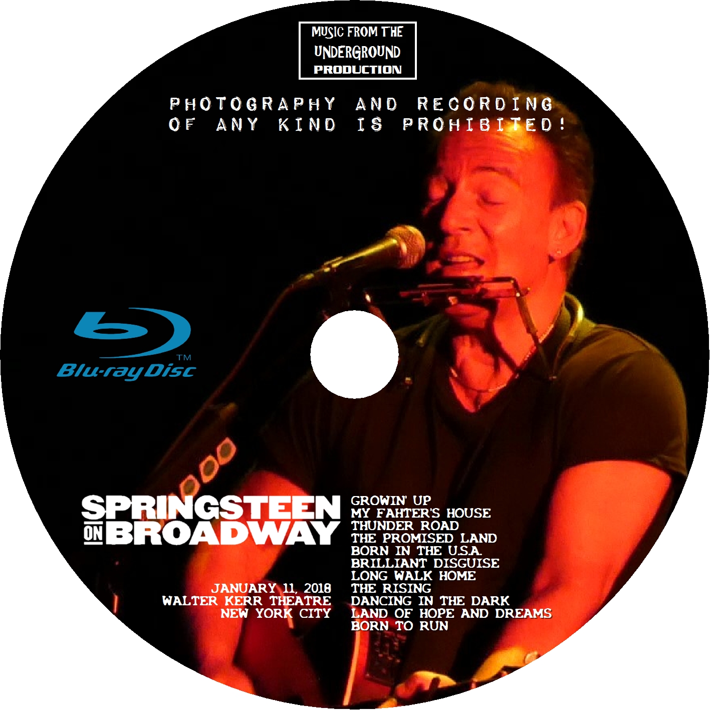 Title: Springsteen on Broadway January 11, 2018 Blu-ray "Photography and Recording Of Date: 2018-01-11 Uploader: Jockel